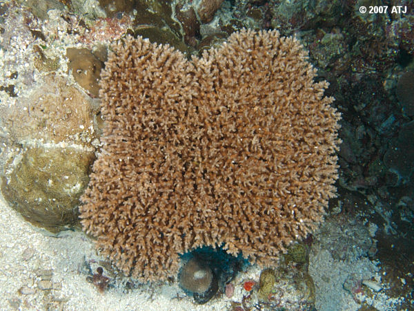 Acropora sp. colony, probably A. grandulosa. 29 m. |