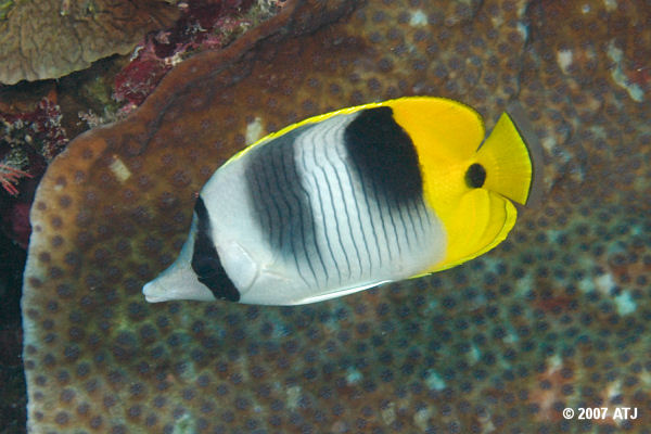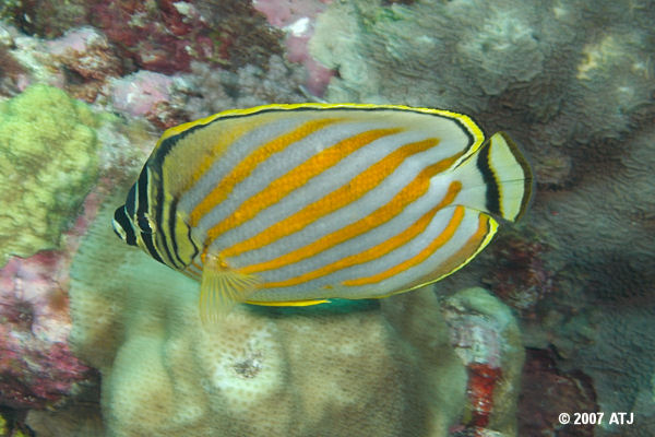 Ornate butterflyfish, Chaetodon ornatissimus. 7.2 m. |
