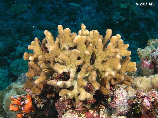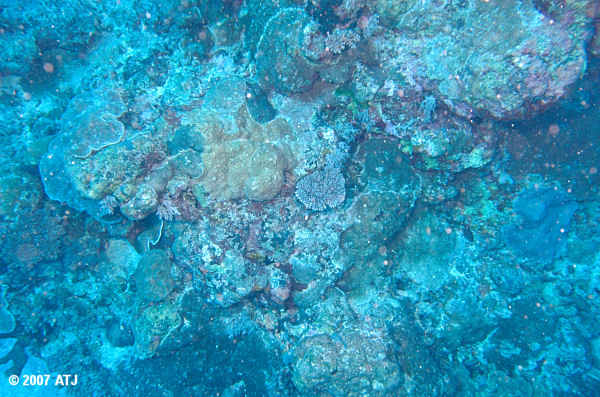 Acropora sp. colony, probably A. grandulosa. 27.4 m. |