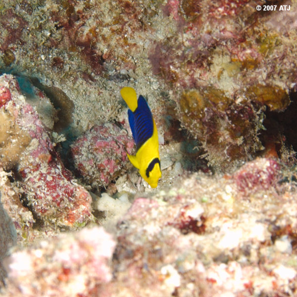 Tiny juvenile bicolour angelfish, Centropyge bicolor. 20.6 m. |