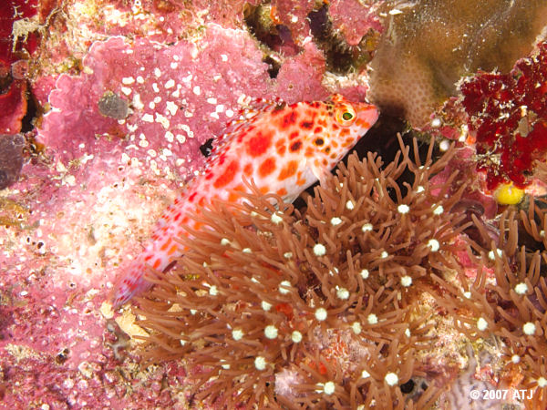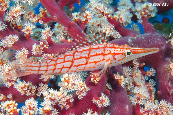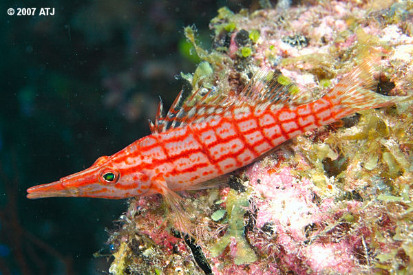 Longnose hawkfish, Oxycirrhites typus. 14.4 m. |