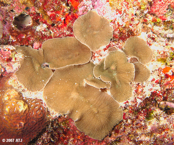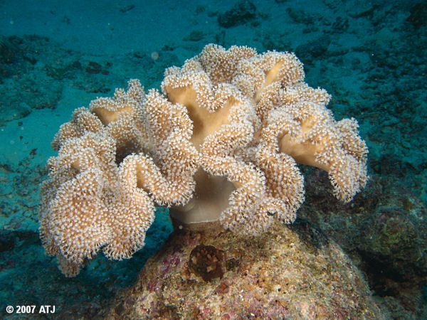 Soft coral, Sarcophyton sp., colony. 20.2 m. |