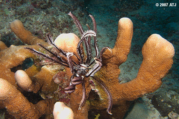 Crinoid on Acropora (Isopora) palifera colony. 18 m. |