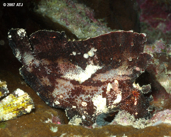 Leaf scorpionfish, Taenianotus triacanthus. 7.9 m. |
