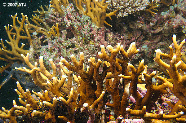 Hydrocoral, Millepora sp., colonies. 11.4 m. |
