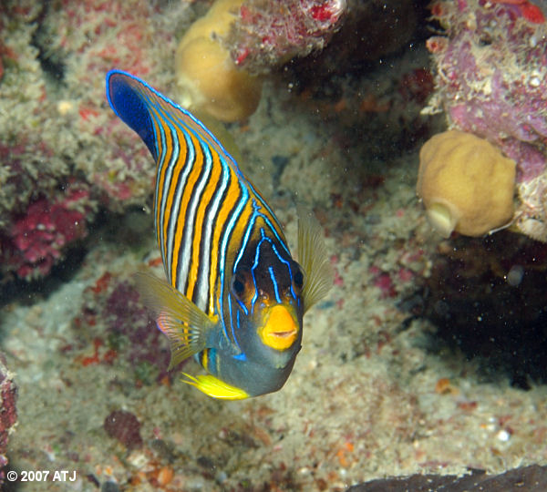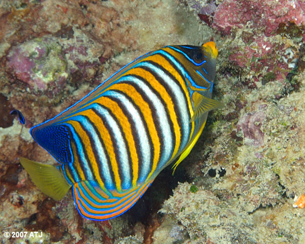 Regal angelfish, P. diacanthus. 8.9 m. |