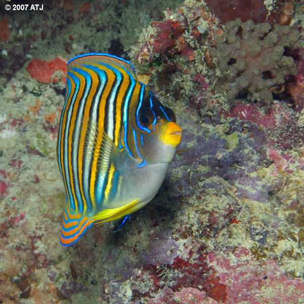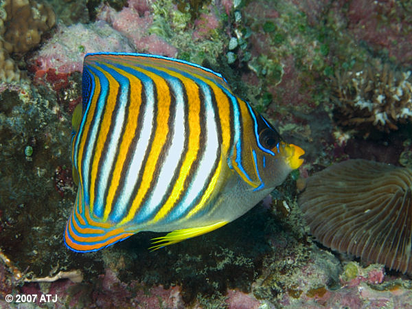Regal angelfish, Pygoplites diacanthus. 9.5 m. |