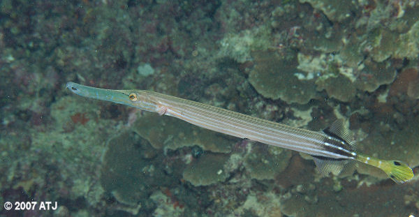 Trumpetfish, Aulostomus chinensis. 7.7 m. |