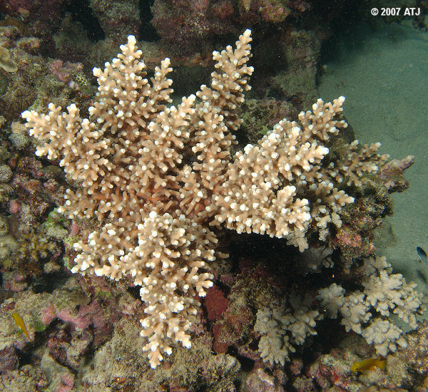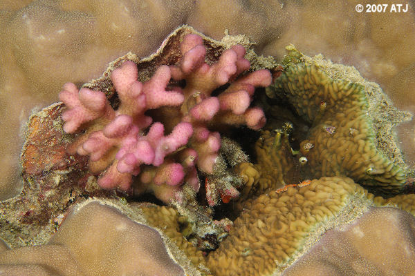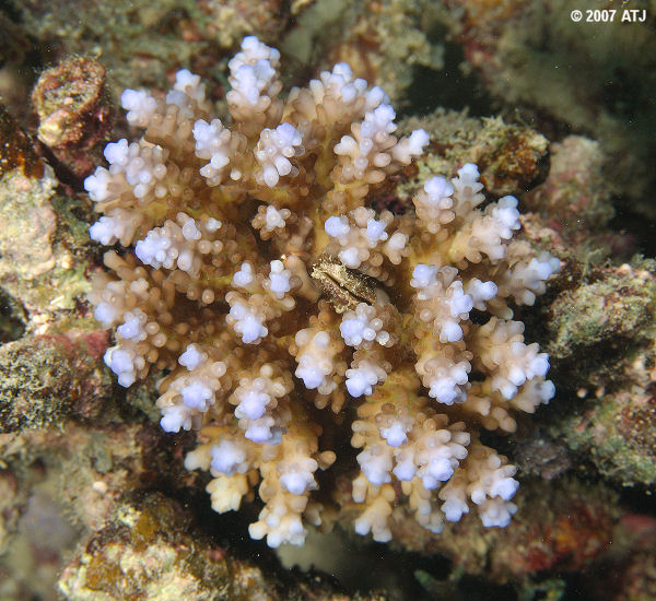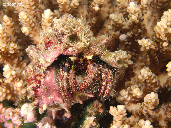 Hermit crab in Acropora sp. colony. 7.4 m. |