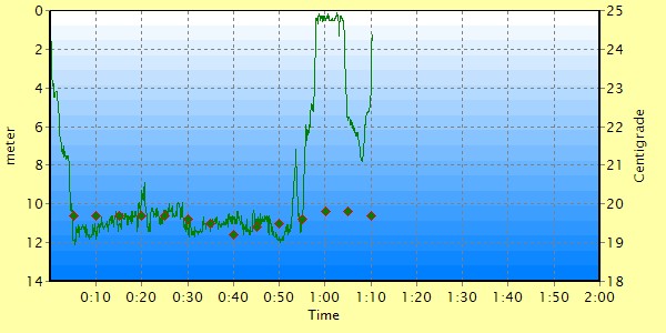 Pot-belly seahorse, Hippocampus bleekeri. 11 m. |