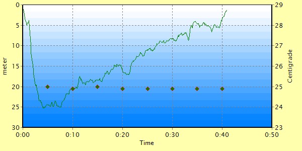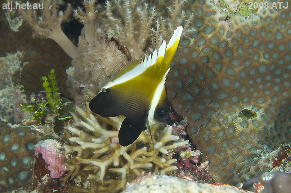 Pennant Bannerfish, Heniochus chrysostomus. 18.8 m. |
