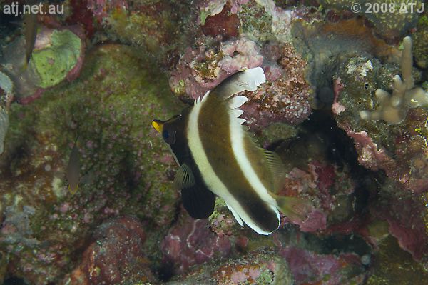 Humphead bannerfish, Heniochus varius. 17.2 m. |