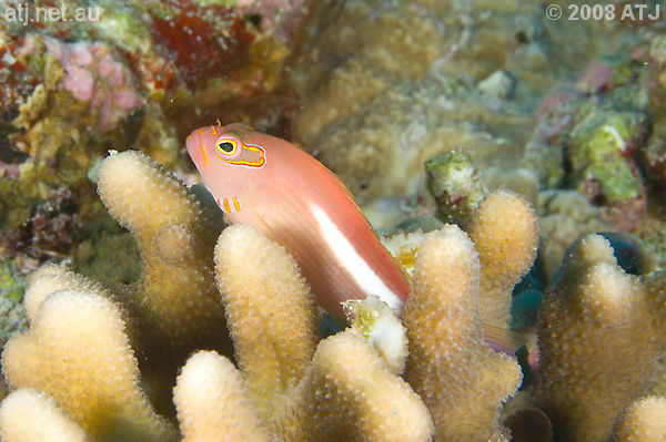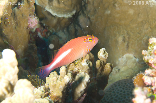Arc-eye hawkfish, Paracirrhites arcatus. 15.7 m. |
