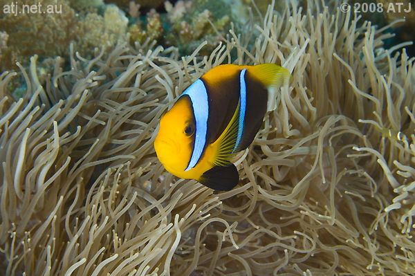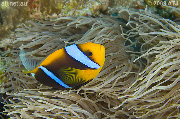 Orange-fin anemonefish, Amphiprion chrysopterus. 15 m. |