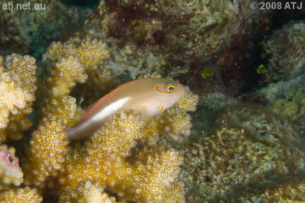 Arc-eye hawkfish, Paracirrhites arcatus. 5.1 m. |