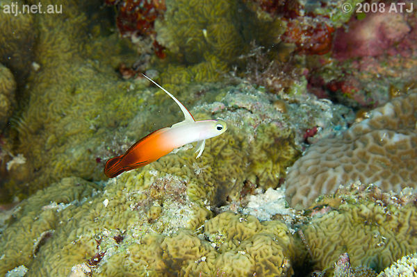 Red firefish, Nemateleotris magnifica. 10.3 m. |