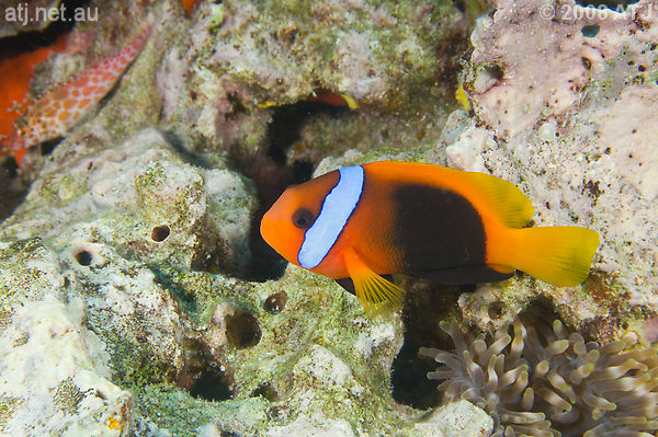 Barrier reef anemonefish, Amphiprion akindynos. 17.3 m. |
