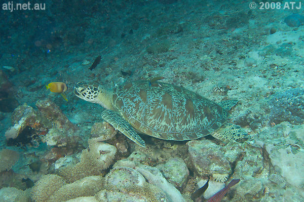 Green turtle, Chelonia mydas. 11.8 m. |