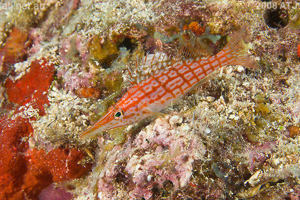 Longnose hawkfish, Oxycirrhites typus. 17 m. |