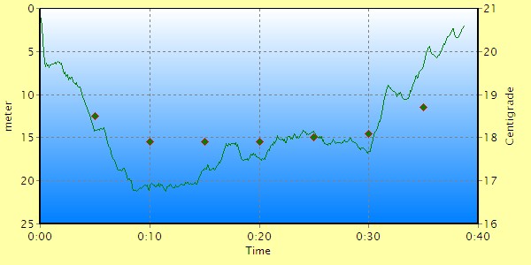 Club dive with St George Underwater Centre. Jumped in at The Leap and drifted towards The Steps. Unfortunately, my tank was leaking (from the O ring between the valve and the tank) and I started the dive with only 160 bar. I had to surface some 50-100 metres before The Steps. |