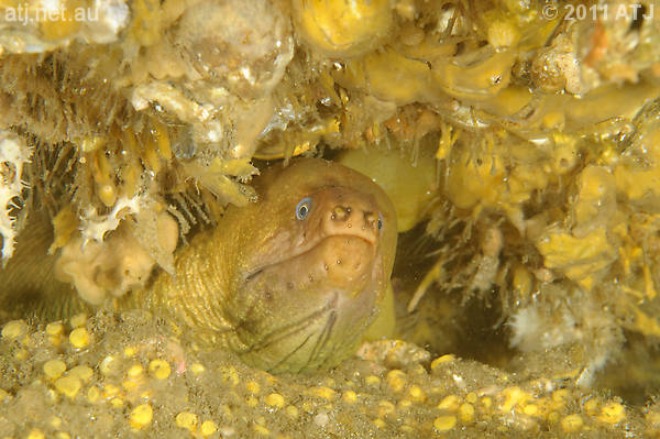 Green moray eel, Gymnothorax prasinus. 8 m. |