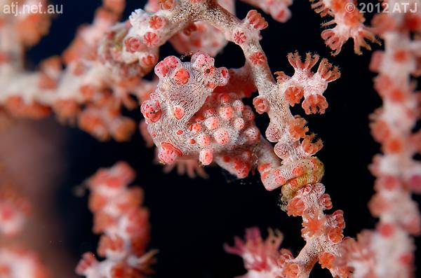 Pygmy seahorse, Hippocampus bargibanti. 25.1 m. |