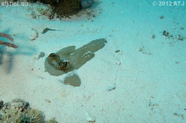Cowtail ray, Pastinachus sephen (Peter in the background for scale). 13.7 m. |