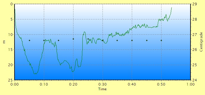 The tenth dive on the Pa Siren trip and fourth at Gili Lawa Laut. On this dive we rode a strong current in the channel between the islands, Gili Lawa Laut and Gili Lawa Darat. The current is very strong at times and we were moving pretty quickly for a couple of minutes. Once at the other end, things slow down and we had time to look around the reefs there. Right near the end of the dive a number of people saw a manta ray. |