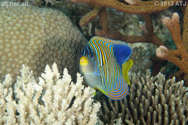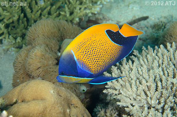 Majestic angelfish, Pomacanthus navarcus. 7 m. |