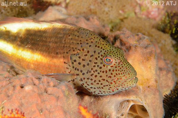 Black-sided hawkfish, Paracirrhites forsteri. 6 m. |