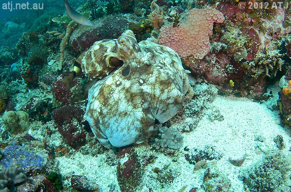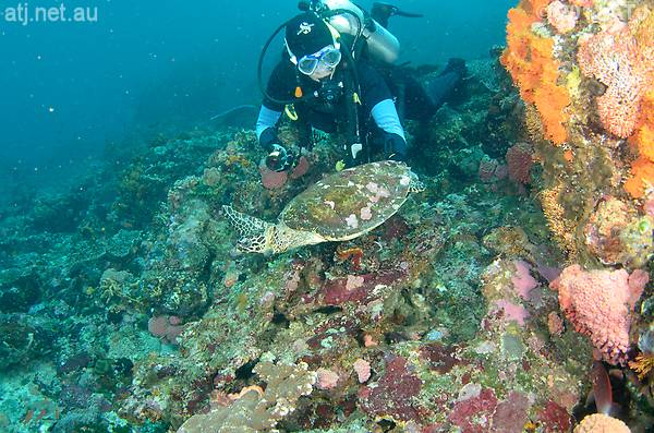 The 18th dive on the Pa Siren trip, the second dive off Komodo Island itself. Manta Alley, as the name suggests, is a place frequented by mantas. Unfortunately for us, there were none there when we were. It was still an enjoyable dive with a few hawksbill turtles and an octopus that was tent hunting. |