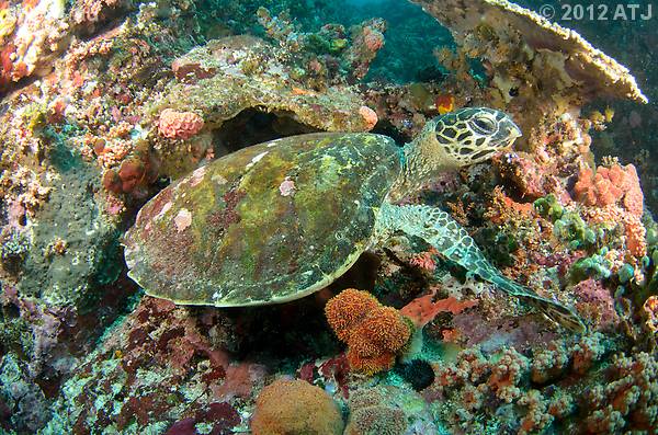 Hawksbill turtle, Erectmochelys imbricata. 12.2 m. |