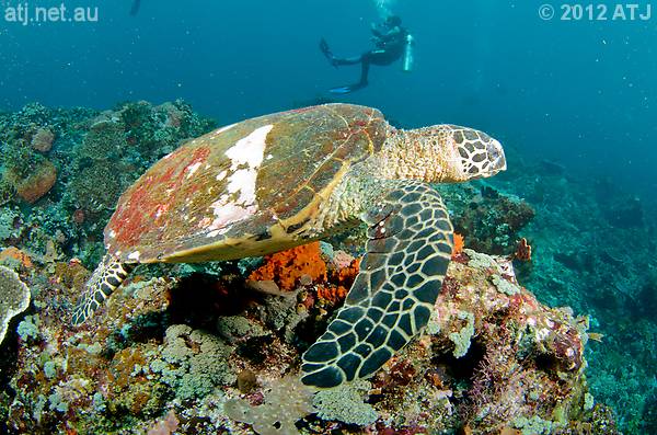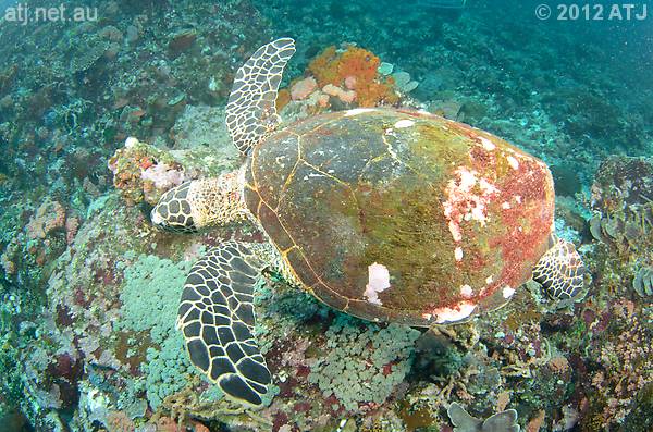 Hawksbill turtle, Erectmochelys imbricata. 13.8 m. |