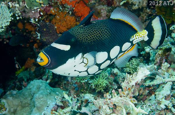 Clown triggerfish, Balistoides conspicillum. 11.6 m. |