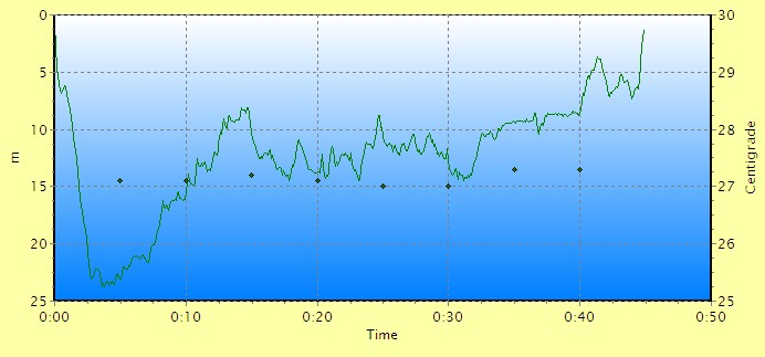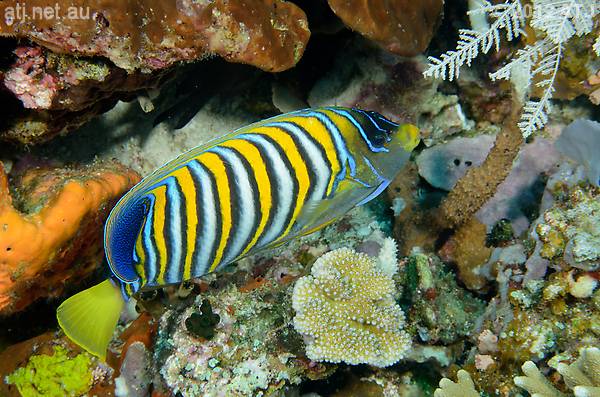 Regal angelfish, Pygoplites diacanthus. 11.4 m. |