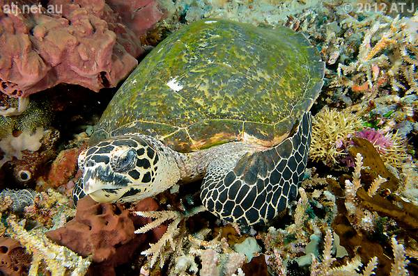 Hawksbill turtle, Erectmochelys imbricata. 13.8 m. |
