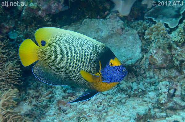 Blue-face angelfish, Pomacanthus xanthometopon. 9.6 m. |