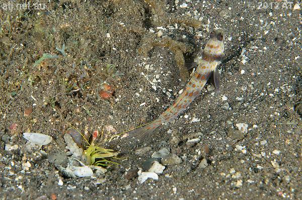 Shrimp goby, Amblyeleotris periophthalma and snapping shrimp. 9.5 m. |