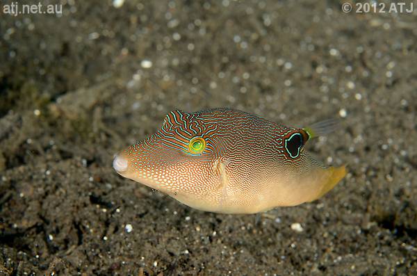 Spotted sharpnose puffer, Canthigaster solandri. 12.3 m. |