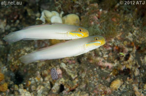 Pair of golden-headed sleeper gobies, Valenciennea strigata. 8.9 m. |
