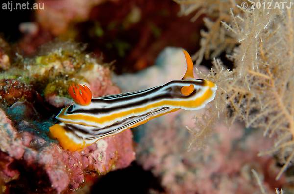 Nudibranch, Chromodoris elizabethina. 10.2 m. |