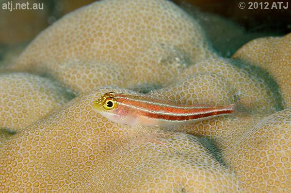 Tropical striped threefin, Helcogramma striata. 6.2 m. |