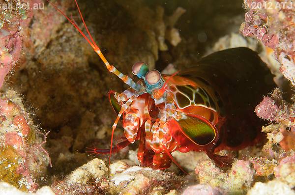 Peacock mantis shrimp, Odontodactylus scyllarus. 9.7 m. |