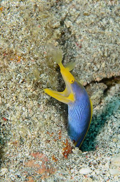 Female ribbon eel, Rhinomuraena quaesita. 6.6 m. |