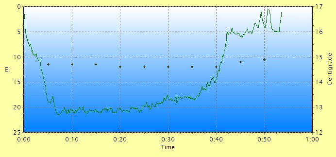 Entered at "The Leap" and went straight to the sand line. Followed the sand line to Seahorse Rock. It took nearly 10 minutes to find the regular three seahorses. (Sheree was the one that found them.) We then went to look for "Southern Cross". It took a long time to find her on her rock but after reviewing the photographs it turns out I found a male with similar markings. After leaving "Southern Cross"'s rock, Sheree found an anchor but could not carry it with the chain attached and the "D" link was rusted closed so she left it behind. We exited at The Steps. Unfortunately, the camera was playing up and many of the photographs were over exposed. I managed to recover a few. |
