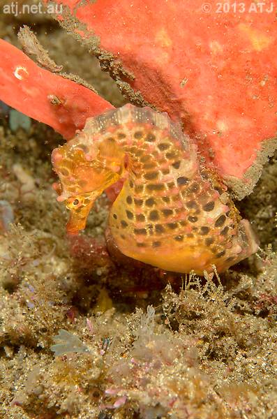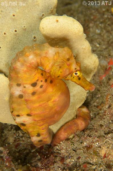 Male pot-bellied seahorse, Hippocampus abdominalis ("Kel"). 17.2 m. |