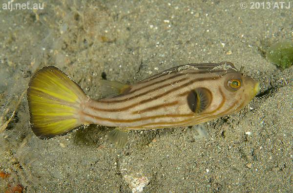 Lined pufferfish, Arothron manilensis. 15.9 m. |
