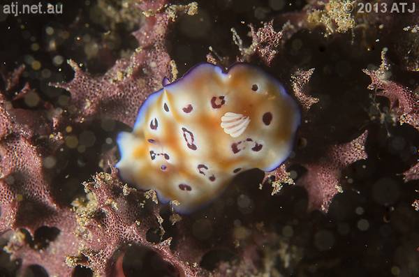Nudibranchs, Chromodoris aureopurpurea. 6.8 m. |