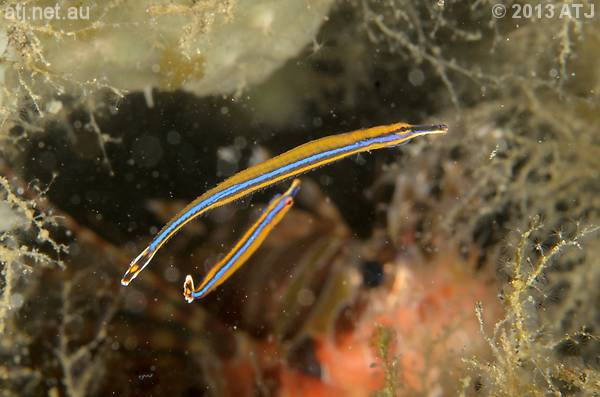 Pacific blue-stripe pipefish, Doryrhamphus melanopleura. 17.7 m. |