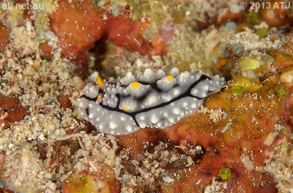 Nudibranch, Phyllidiella pustulosa. 19.5 m. |